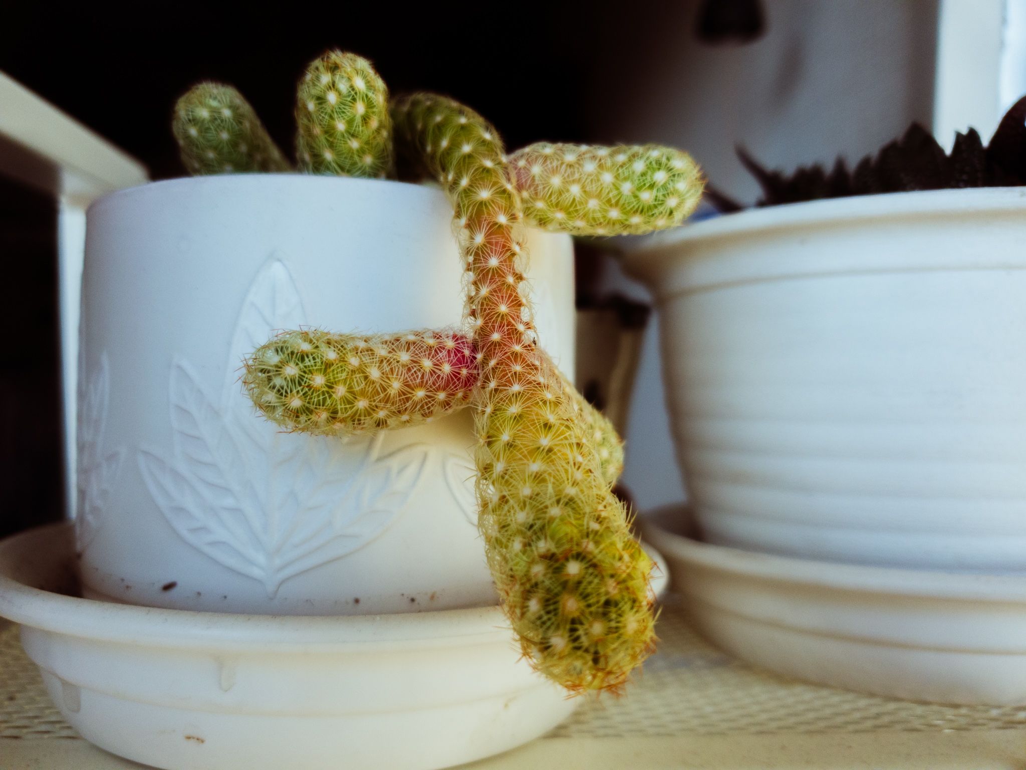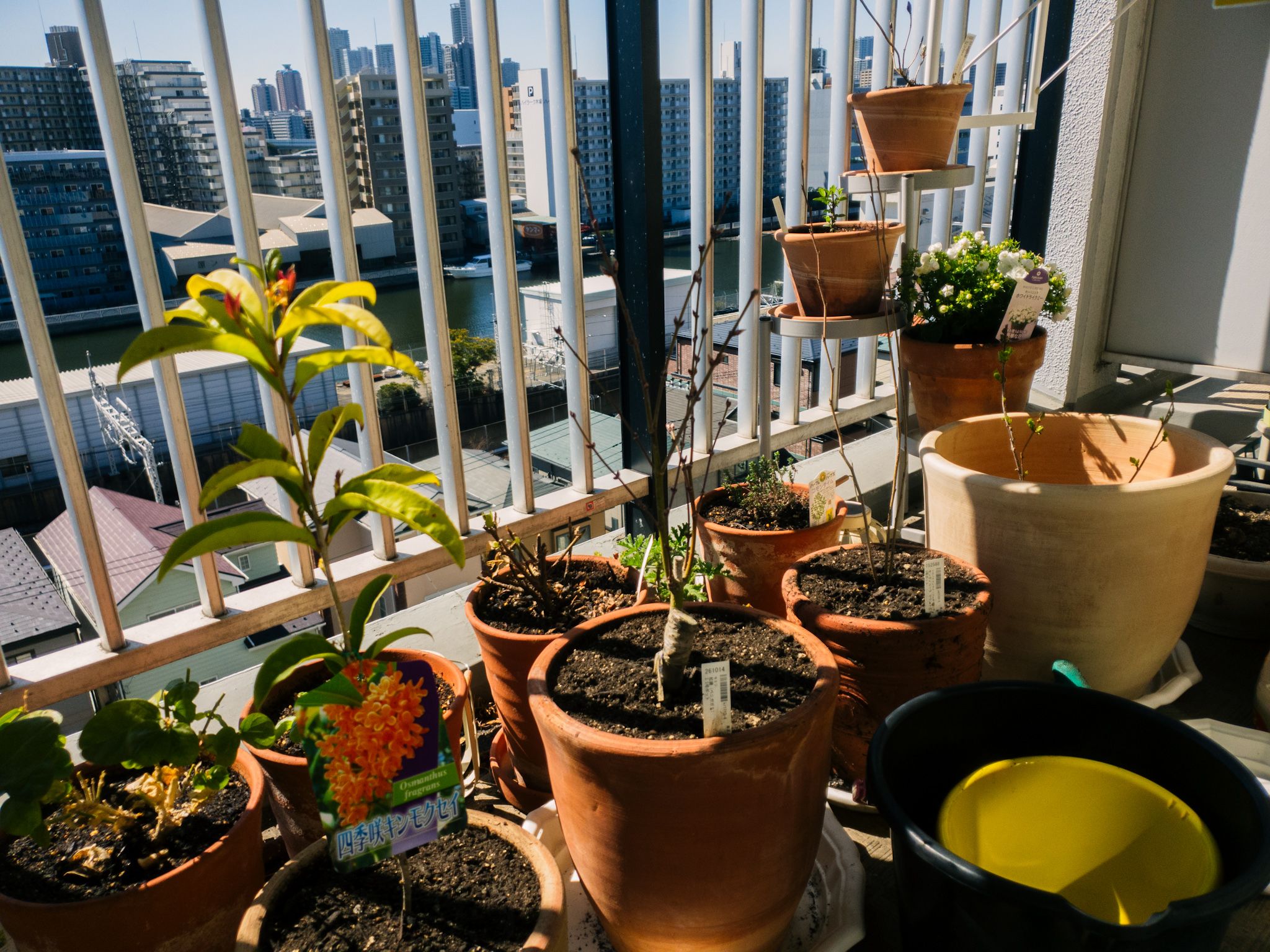 This one that’s branching out was actually a piece of the flowering one, knocked off by Halee as she walked by the plant one day and accidentally ran into it. This was many, many years ago when we were still relatively fresh in Saitama. I was really upset at the time, but I left the nub on my desk, too busy with life to figure out what to do with it. Eventually, I noticed that it started to sprout roots, and decided to plant it in an overly large pot (only one we had at the time). It took root, grew some friends, and now it’s going strong years later here in Tokyo.