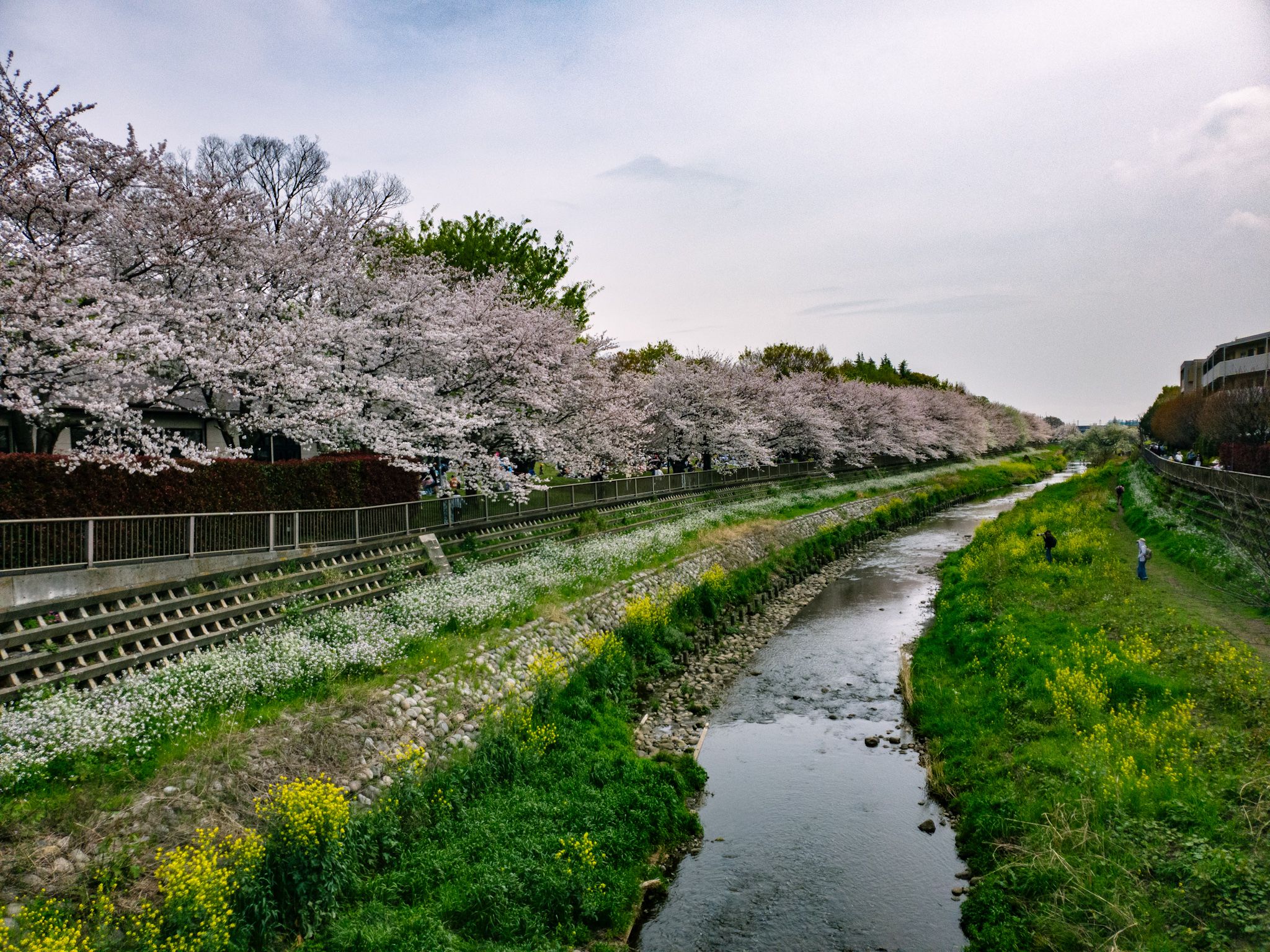 A lot of Japan is classified as flood plains, so you’ll find tons of rivers lined with cherry blossoms!